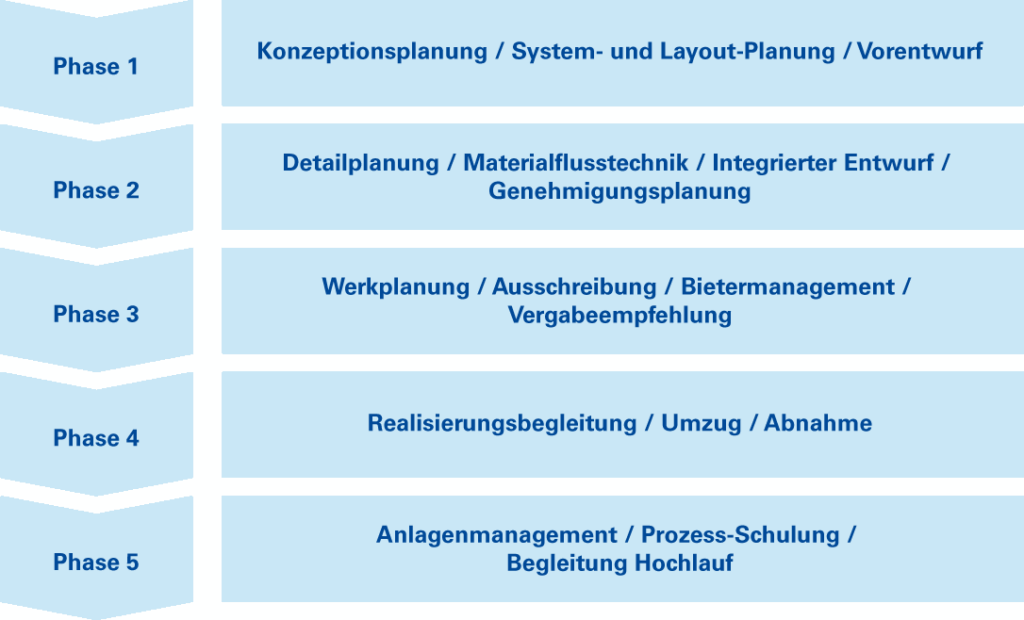 Ganz gleich, ob Sie eine Optimierung bestehender Systeme oder eine Neuentwicklung von Anlagen oder Gebäuden planen – wir unterstützen Sie mit strategischen, prozessorientierten oder technologischen Konzepten – passgenau zu Ihren individuellen logistischen Anforderungen. Im Fokus unserer Arbeit stehen Ihre Prozesse, Ihre Fragen und Bedarfe!
